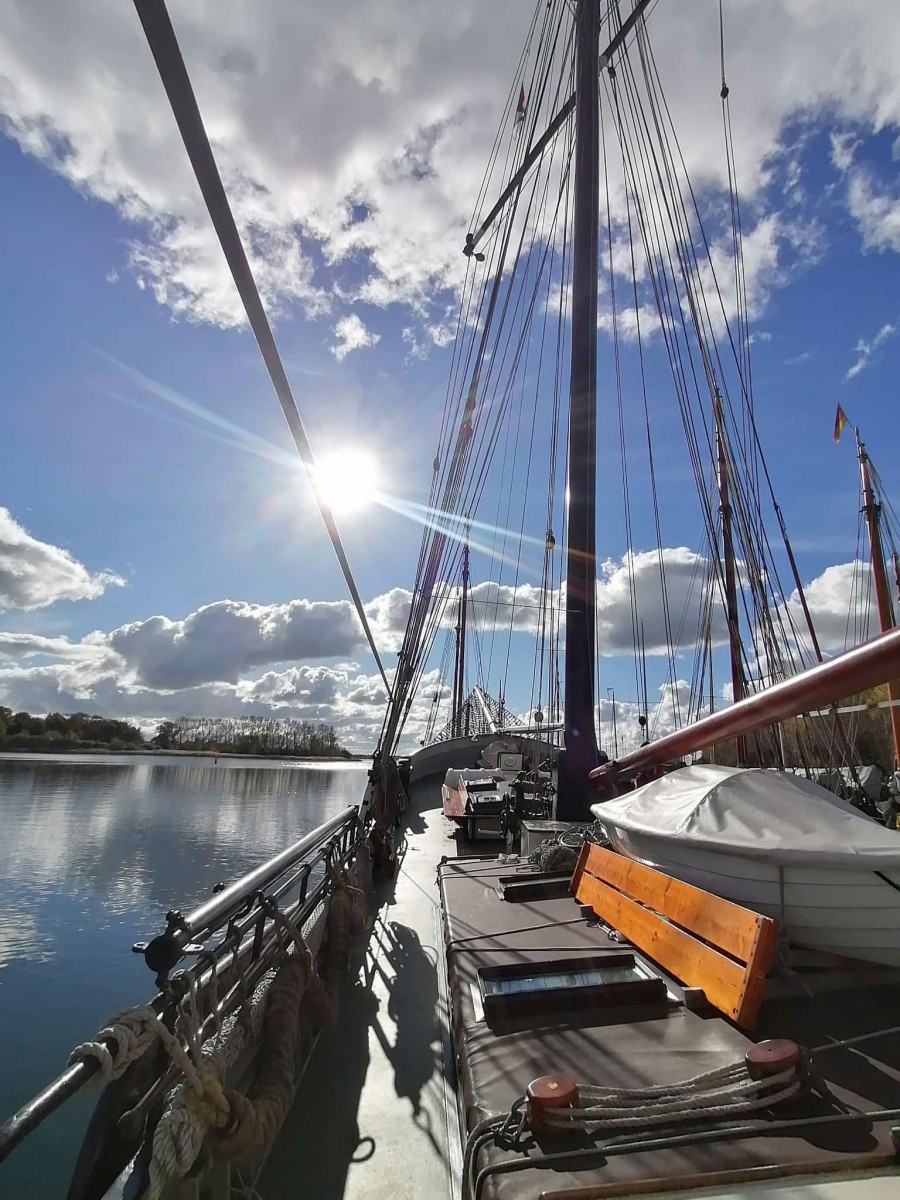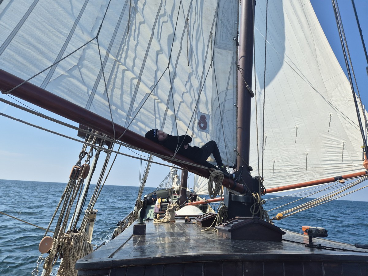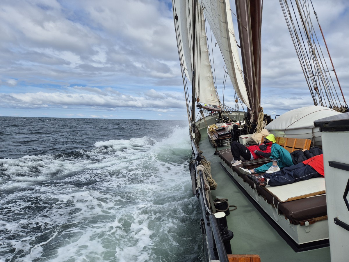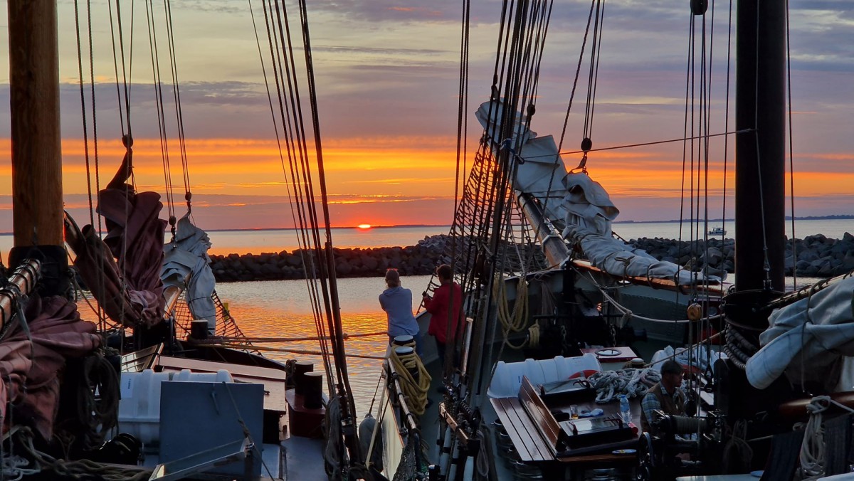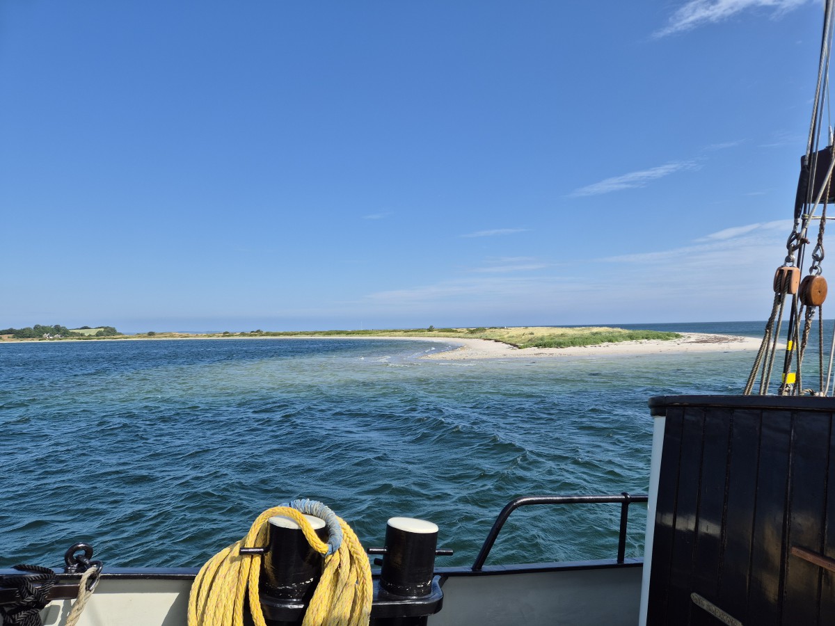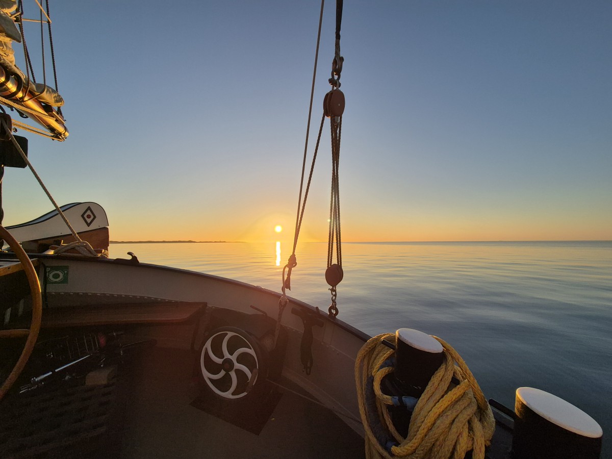 Schleichfahrt mit Topsegeln vor Hiddensee
