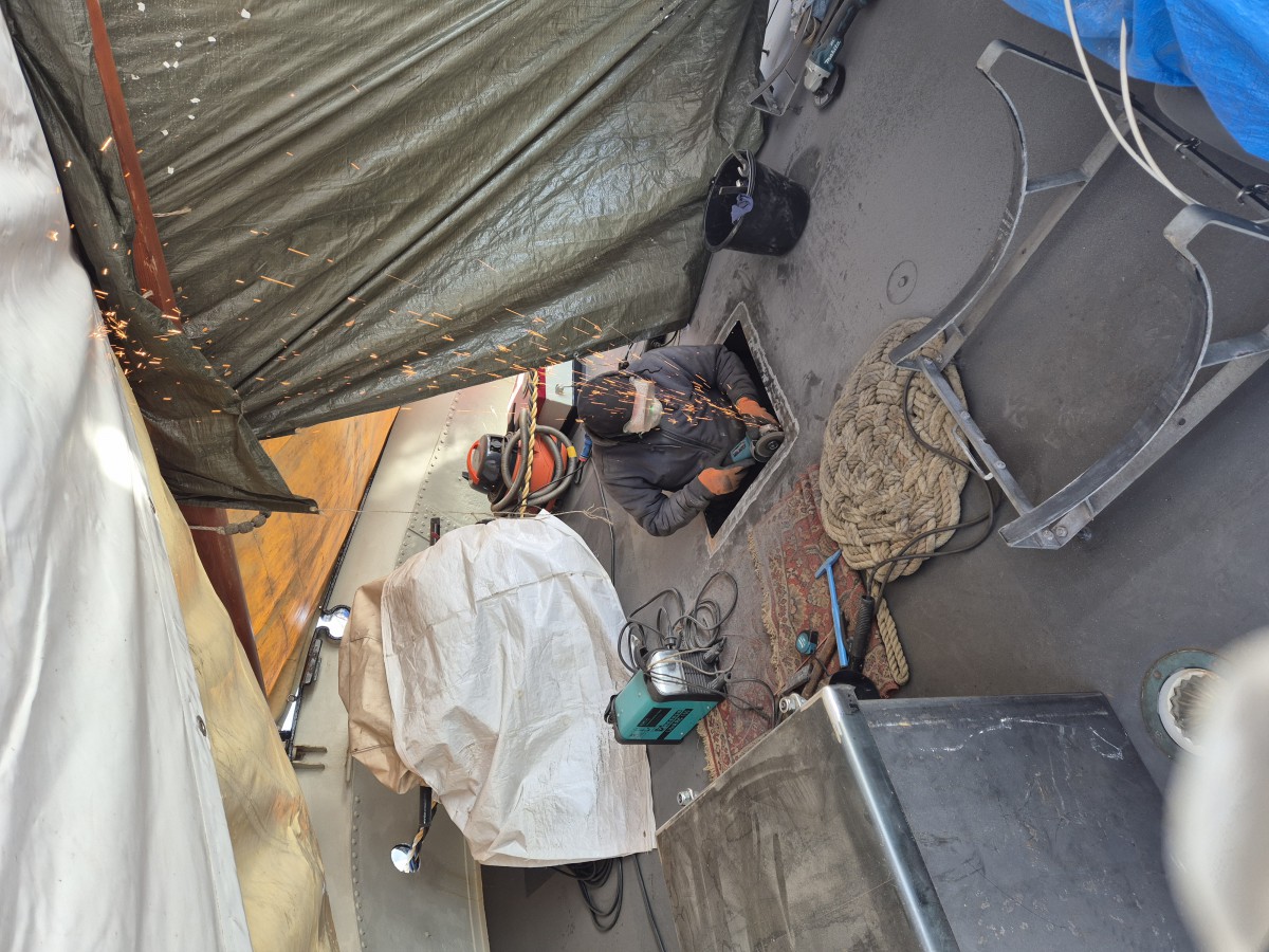 Das Deck wird gruen und die neue Luke ist auch fertig